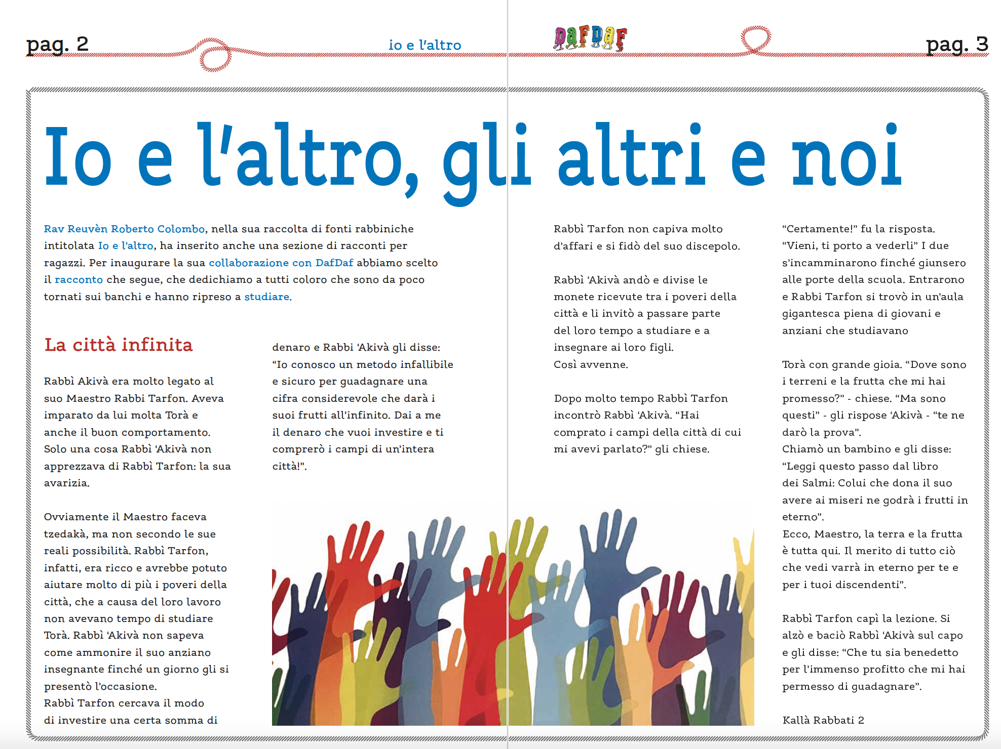 Il numero di ottobre del giornale ebraico dei bambini, il 161, continua a dedicare spazio e attenzioni a quello che sarà il fil rouge del 5786: come possiamo dare corpo e sostanza all’idea del tiqqun ‘olam (תיקון עולם)? Cosa significa “riparare il mondo”? Un concetto che accompagna da secoli la preghiera finale di ogni liturgia ebraica, l’Alènu, un momento in cui si auspica un ordine morale universale condiviso nel Talmud è criterio per le correggere norme giuridiche quando danneggiano l’equilibrio sociale. È un principio di giustizia attiva, non uno slogan spirituale; significa rifiutare l’indifferenza, come nel principio biblico. “Non restare immobile sul sangue del tuo prossimo”; si manifesta nell’educazione, nel rispetto dell’ambiente, nella tutela dei diritti. È stato la spinta di molti ebrei nei movimenti per i diritti civili, e continua oggi a ispirare attivisti, medici e giuristi israeliani che operano per una società più inclusiva e solidale. E proprio oggi, mentre affrontiamo sfide drammatiche il Tiqqun ‘Olam non deve restare patrimonio di una minoranza idealista, ma diventare una bussola per scelte concrete, capaci di restituire coerenza etica e visione. Riparare il mondo non è un’utopia, ma un’urgenza che comincia con un gesto semplice: conoscere davvero, e studiare. Le prime due pagine, dedicate alla nuova rubrica di rav Reuvèn Roberto Colombo, ci ricordano come le fonti rabbiniche con la loro saggezza e con i loro insegnamenti spiegano che ogni gesto, anche piccolo, può avere effetti duraturi. In “La città infinita”, il racconto che abbiamo scelto per aprire questa nuova collaborazione, Rabbì ‘Akivà trasforma l’avidità del suo maestro in un dono che cresce all’infinito: distribuendo le ricchezze tra i poveri e invitandoli a studiare Torah, egli mostra che la vera ricchezza non si misura in oro, ma nella conoscenza e nella capacità di fare il bene.