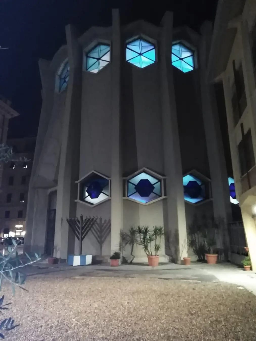 Da Merano a Napoli, da Genova a Trieste (nell’immagine), le sinagoghe italiane si sono illuminate in ricordo dell’87° anniversario della Kristallnacht, la «Notte dei cristalli»: tra il 9 e il 10 novembre 1938, in Germania e in Austria, case, sinagoghe e negozi di proprietà ebraica vennero saccheggiati e distrutti, e centinaia di persone furono uccise. Organizzata dall’Unione delle Comunità Ebraiche Italiane, l’iniziativa è stata un omaggio alle «luci che un tempo furono spente». Oggi, sottolineano i promotori, le luci accese delle sinagoghe rappresentano il «simbolo di un’identità ebraica viva e vibrante».