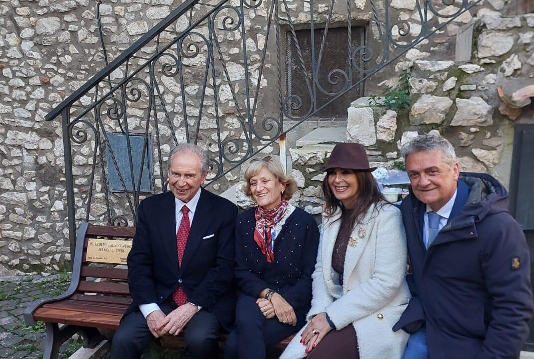 La visita è stata commemorata anche con una targa, apposta su una panchina pubblica del comune romano.