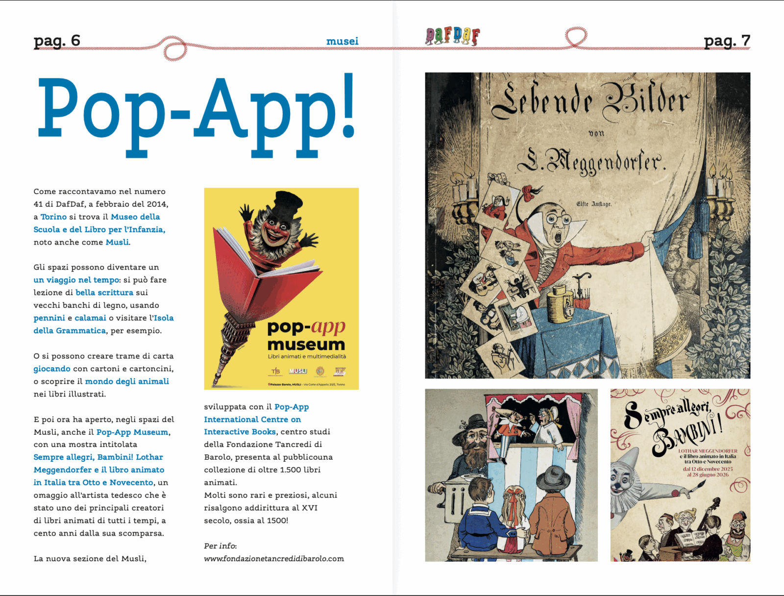 Hanno aperto infatti in queste settimana il Pop-App Museum con una mostra intitolata Sempre allegri, Bambini! Lothar Meggendorfer e il libro animato in Italia tra Otto e Novecento: è un omaggio all’artista tedesco che è stato uno dei principali creatori di libri animati di tutti i tempi, a cento anni dalla sua scomparsa.