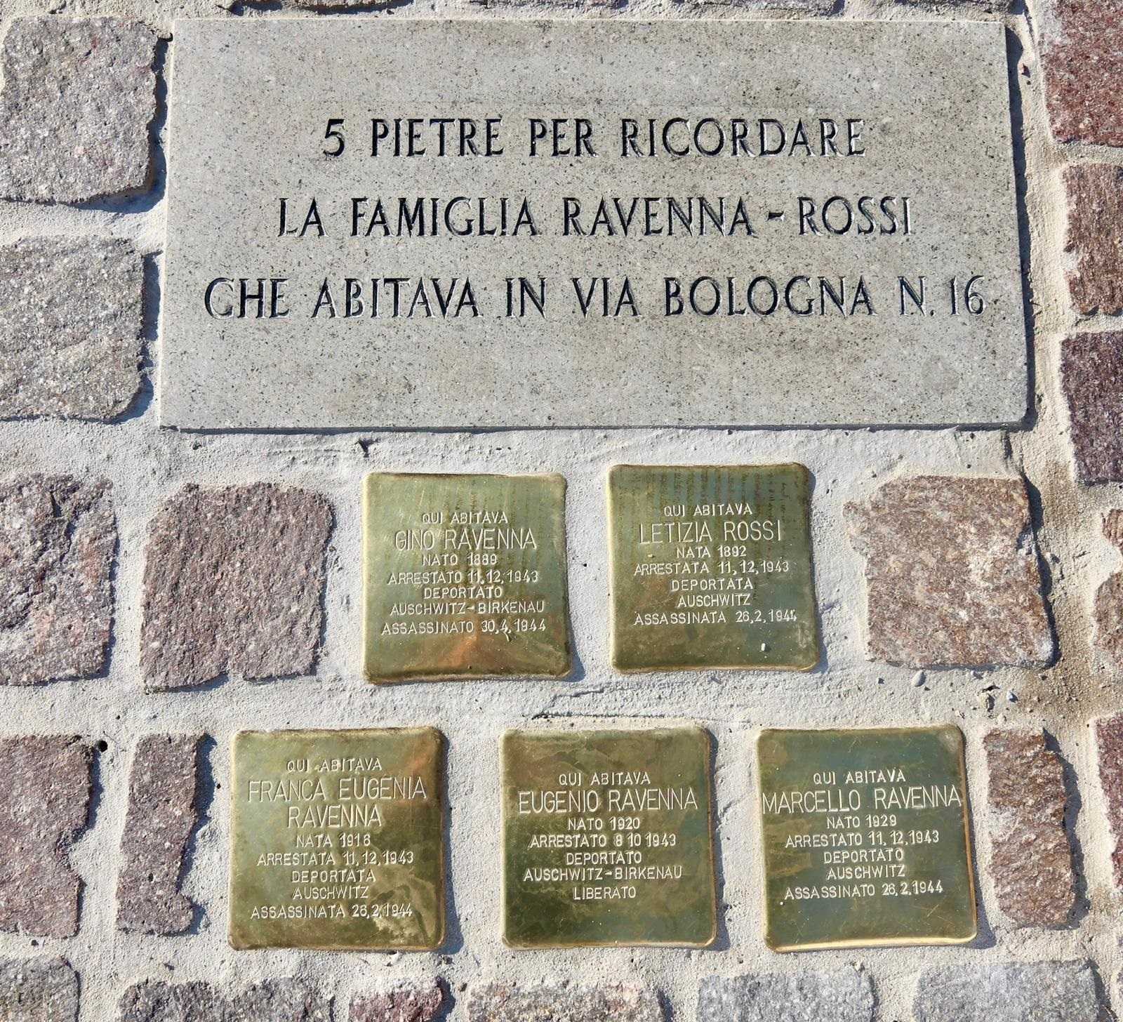 L’edificio in cui abitavano, nel cuore di Ferrara, non esiste più. Cinque pietre d’inciampo ricordano però da stamane che in via Bologna al civico 16 viveva un tempo una famiglia ebraica risucchiata e quasi del tutto annientata nella Shoah: Gino Ravenna con la moglie Letizia Rossi e i loro tre figli Franca Eugenia, Eugenio e Marcello. Tutti arrestati nell’autunno-inverno del 1943 dai nazifascisti e tutti deportati ad Auschwitz-Birkenau, da dove il solo Eugenio farà ritorno. Famiglia molto in vista perché Renzo Ravenna, uno dei fratelli di Gino, era stato podestà di Ferrara dal 1926 al 1938 e si era dimesso pochi mesi prima dell’entrata in vigore delle leggi razziste. Molto conosciuto era lo stesso Gino, commerciante con un passato di ginnasta di alto livello. A Londra 1908, nella quarta edizione dei Giochi olimpici moderni, aveva brillato con un sesto posto nella competizione a squadre. «È stata una cerimonia molto emozionante. C’era tanta gente e c’erano soprattutto alcuni alunni di scuola elementare, che hanno recitato una poesia», sottolinea il presidente della Comunità ebraica ferrarese Fortunato Arbib, intervenuto all’iniziativa insieme al rabbino capo della città Luciano Meir Caro, al vicesindaco Alessandro Balboni e ai discendenti dei Ravenna. Era tra gli altri presente Amedeo Spagnoletto, il direttore del Museo Nazionale dell’Ebraismo Italiano e della Shoah (Meis).