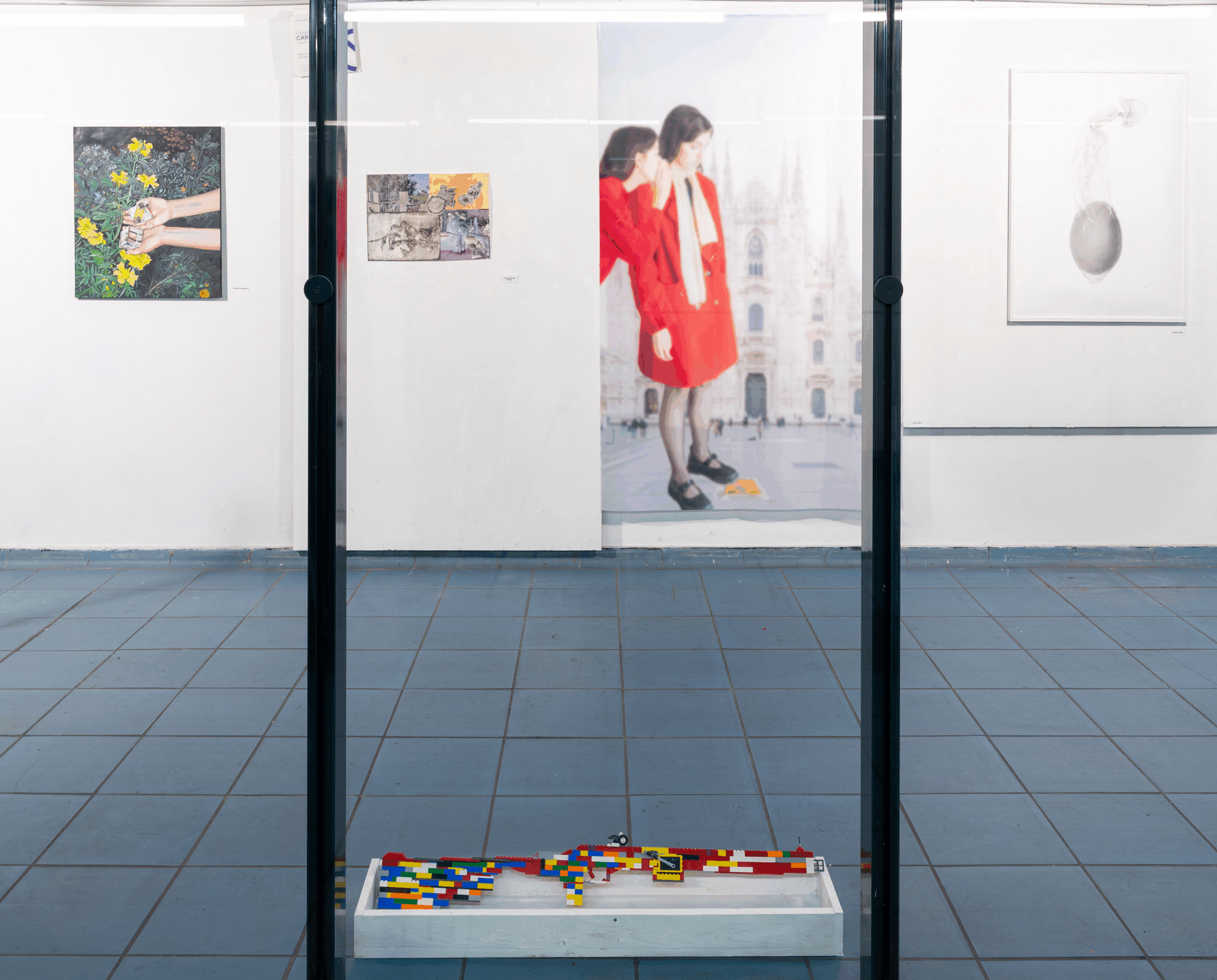 Un fucile costruito con mattoncini Lego è presentato come un oggetto quasi innocuo. I colori primari e il materiale associato all’infanzia attenuano l’impatto visivo dell’arma. Ma è proprio in questo scarto che l’opera si carica di ambiguità: ciò che appare gioco nasconde una violenza potenziale. La propaganda, suggerisce il lavoro, non si manifesta sempre in forma minacciosa. Spesso assume i tratti dell’intrattenimento, del consumo, della leggerezza.