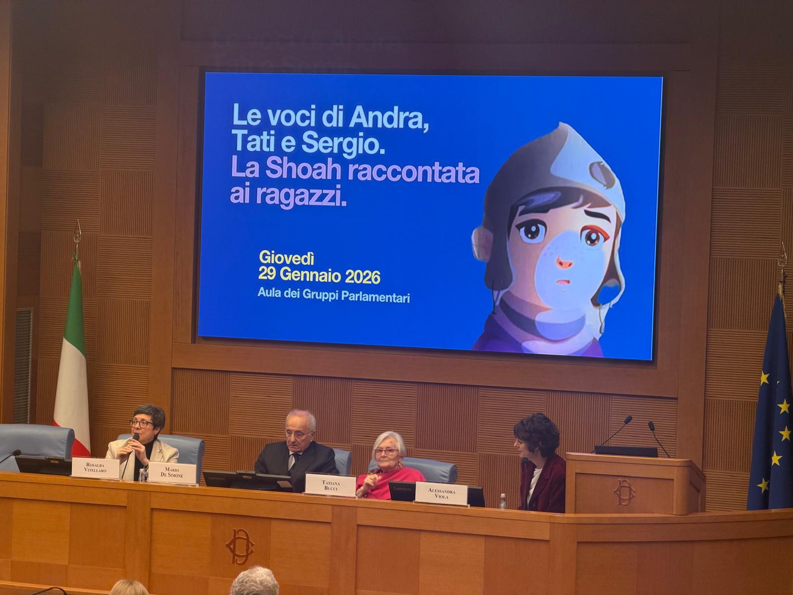 «Scappate dalla contaminazione dei fatti del presente, siate testimoni di verità», ha affermato il vicepresidente della Camera Giorgio Mulè nel breve saluto che ha preceduto la proiezione. «La sfida della memoria che affrontiamo oggi è particolarmente ardua. Come si esprime la vicenda dell’orrore ai bambini, se è giusto farlo in assoluto e come? E non solo, come spiegare un orrore che ha come vittime proprio i bambini? Quale obiettivo oltre alla conoscenza si può perseguire», ha affermato la presidente Ucei Noemi Di Segni, intervenuta in sala assieme alla ministra per la Famiglia, Eugenia Maria Roccella, all’ambasciatore tedesco a Roma Thomas Bagger, ad Alessandra Viola, e a Mario Venezia presidente della Fondazione Museo della Shoah. Tatiana Bucci e Mario De Simone hanno raccontato la storia di Sergio. Tutti i relatori hanno richiamato il valore della responsabilità, il dovere di non voltarsi dall’altra parte, di dare voce a chi spesso resta invisibile e di trasformare la memoria e il racconto in consapevolezza.