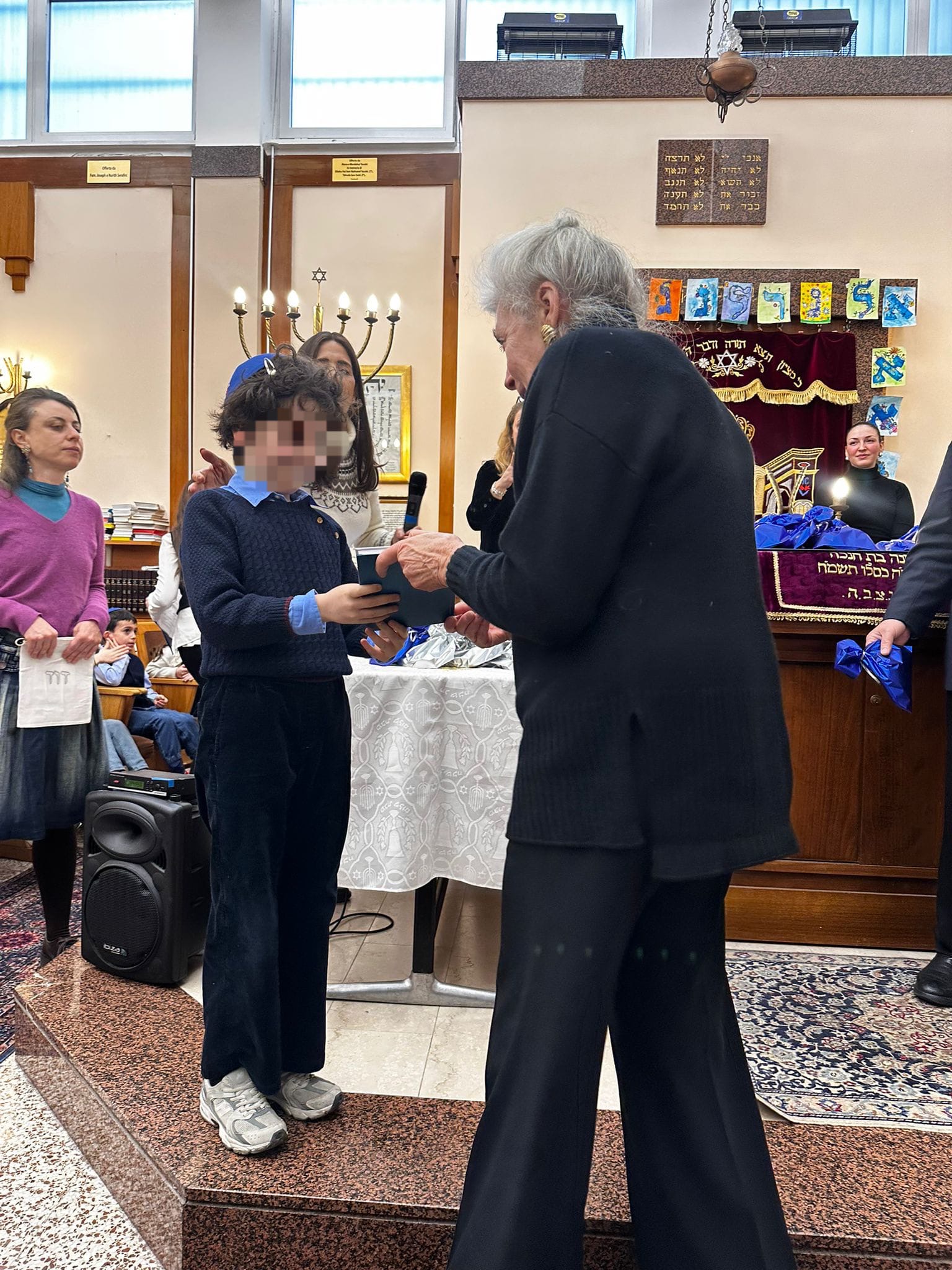 «La consegna del siddur segna il passaggio», sottolinea il rabbino capo, «a un rapporto più personale con il testo». In questo senso, la Messibat haSiddur funziona come rito di passaggio laico-religioso, segna una soglia simbolica e un prima e un dopo nel rapporto tra il bambino e la comunità. In Italia la pratica si affermata la preparazione didattica, il momento cerimoniale, la consegna personalizzata del siddur e il coinvolgimento delle famiglie. «Il rapporto con i nonni è centrale: i bambini si rivolgono a loro con fiducia, sapendo che da lì arriva qualcosa di importante. È uno scambio reciproco, gli adulti li guardano con amore e la sicurezza che certi valori stanno passando di generazione in generazione», racconta Segre. «Molto spesso sono i nonni a consegnare materialmente il siddur ai nipoti», aggiunge rav Arbib, «ed è un gesto che crea un legame molto forte tra le generazioni». «Ogni anno rav Arbib porta personalmente da Israele gli tzitzit per i maschi, che li useranno fino al bar mitzvà, e i portacandele che vengono donati alle bimbe, per Shabbat: li sceglie, li mette in valigia e li consegna ai bambini durante la cerimonia», racconta Segre. La dimensione intergenerazionale è parte integrante dell’esperienza, così come la presenza della comunità nel suo insieme: «I valori che emergono sono quelli essenziali della Torah: da “ama il prossimo tuo come te stesso” a… “vai e studia”. Come in tutte le feste ebraiche, c’è un’attenzione forte agli altri, alla tzedakà, al canto, all’idea che la vita ebraica sia uno spazio di pace e di responsabilità», sottolinea ancora Segre. Accanto alla cornice simbolica, c’è una scena concreta che si ripete ogni anno. «I bambini arrivano preparati, molte parti le conoscono già a memoria, e sono visibilmente emozionati», osserva il rabbino capo. «Per i bambini questa cerimonia è un momento fondativo, quasi un big bang personale: lo si capisce dal silenzio che si crea, dai sorrisi, dall’applauso affettuoso, dagli abbracci e dalla commozione», aggiunge Segre. Il siddur entra così presto nella loro biografia. L’importazione e l’adattamento locale della Messibat haSiddur rispondono a un bisogno diffuso delle comunità ebraiche moderne: creare legami visibili tra generazioni, dare concretezza alla trasmissione, trasformare un testo liturgico in un oggetto di esperienza personale. «Non a caso la cerimonia si svolge a Tu Bishvat, è l’occasione giusta: la Torah è paragonata a un albero e i bambini sono i nostri germogli che stanno fiorendo», conclude Segre.