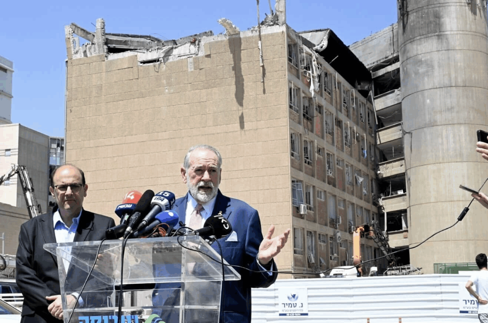 (Nell’immagine in alto, l’ambasciatore Usa Mike Huckabee con il direttore del Soroka, Shlomi Codish, dopo l’attacco iraniano all’ospedale del 26 giugno 2025 – Foto: David Azagury, Ambasciata Usa a Gerusalemme. Nell’immagine in basso, l’arrivo nella notte all’aeroporto Ben Gurion di nuovi aerei cisterna KC 135 dell’aeronautica militare Usa)