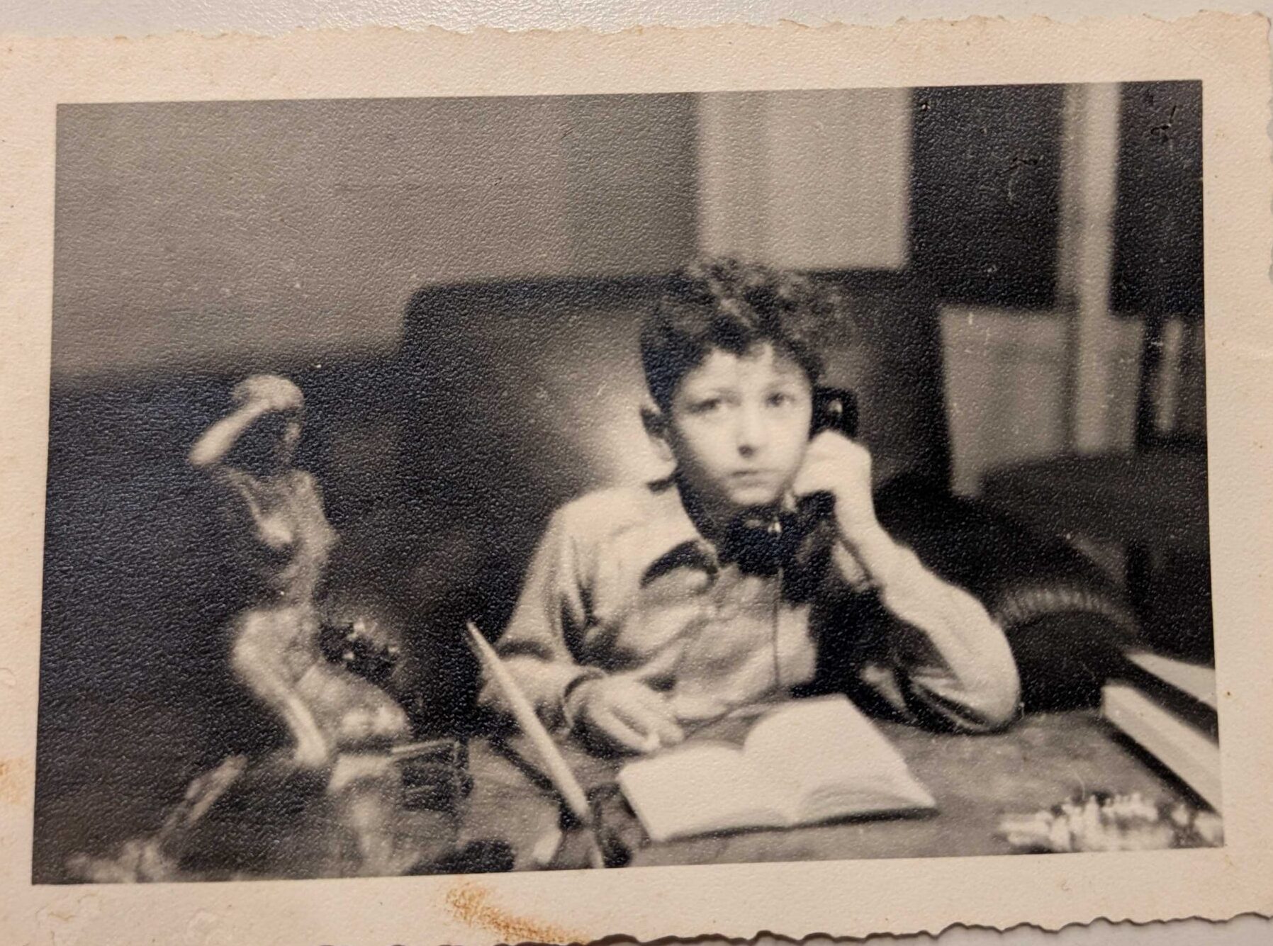 Accanto alle carte, Hassan tira fuori alcune fotografie. In una è ritratto bambino, prima della guerra, accanto a una piccola statuina: l’unico oggetto della casa di via San Michele del Carso rimasto in suo possesso. In un’altra compare la madre, Linda Nemni, in piedi davanti al Lago Maggiore. Sembra una semplice immagine di villeggiatura. «È stata scattata pochi giorni prima dell’eccidio dell’Hotel Meina», dove decine di ebrei furono arrestati, uccisi e gettati nel lago. Anche la famiglia Hassan avrebbe dovuto trovarsi lì: si salvò per caso, perdendo un treno.