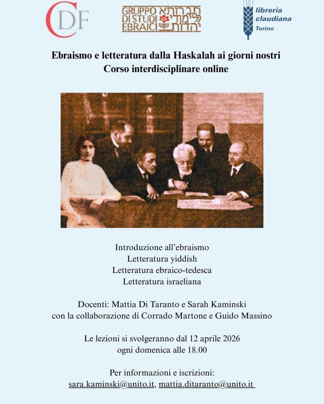 Conosciuto anche come “Illuminismo ebraico”, l’Haskalah ha rappresentato sin dal 18esimo secolo uno spartiacque nel modo di pensarsi e rappresentarsi di una parte dell’ebraismo tedesco e poi, in più larga scala, di quello europeo. Una corrente dai molti influssi e con la quale si confronterà il corso online “Ebraismo e letteratura dalla Haskalah ai giorni nostri” organizzata dal Gruppo di studi ebraici di Torino e dalla Libreria Claudiana con il sostegno della Fondazione Camis De Fonseca. L’iniziativa è curata dai docenti Mattia di Taranto e Sarah Kaminski e prenderà il via domenica 12 aprile alle 18, articolandosi in quattro moduli.