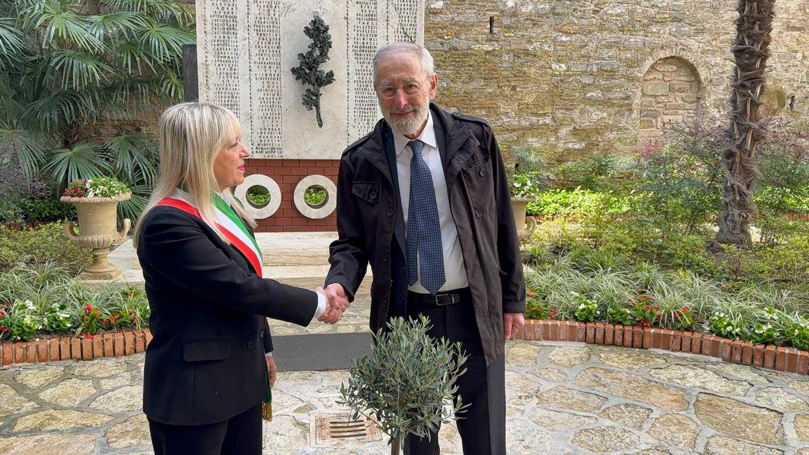 Riccardo, uno dei suoi tre figli, è dal 2001 il rabbino capo di Roma e dal 2011 cittadino onorario di San Severino Marche insieme ai fratelli Elio e Frida. Il 25 aprile sarebbe dovuto essere uno degli ospiti d’onore della cerimonia, ma la concomitanza con lo Shabbat l’ha costretto a declinare l’invito. In quel solco è stato comunque protagonista di alcuni appuntamenti nella giornata di mercoledì, nel corso dei quali ha fatto dono alla cittadinanza di un albero di ulivo come «simbolo mediterraneo di luce, vita e partecipazione» che sarà presto messo a dimora insieme a una targa commemorativa con una dedica al cardinale Edoardo Menichelli. Recentemente scomparso, da bambino era compagno di giochi di Elio e Frida e negli anni ha mantenuto una forte amicizia con i Di Segni. «Questa sua visita è un segno di pace. La sua presenza non è solo un atto istituzionale ma il compimento di un percorso che unisce la nostra comunità alla sua famiglia», ha dichiarato la sindaca Rosa Piermattei. «Accogliendo lei, accogliamo idealmente di nuovo Mosè Di Segni, ribadendo che la memoria non è un esercizio del passato, ma una strada per il futuro». Di Segni ha spiegato come in famiglia la memoria di quel periodo sia «estremamente forte» e «quella protezione silenziosa è il ricordo più bello: prima della teologia, sono proprio l’amicizia e il rispetto a fondare questi rapporti tra le fedi». Il rabbino ha anche lasciato una dedica sul libro d’onore del Comune marchigiano: «Con grande emozione torno nella città di cui sono cittadino onorario, con grande apprezzamento per le doti di amicizia e ospitalità. Un affettuoso saluto».