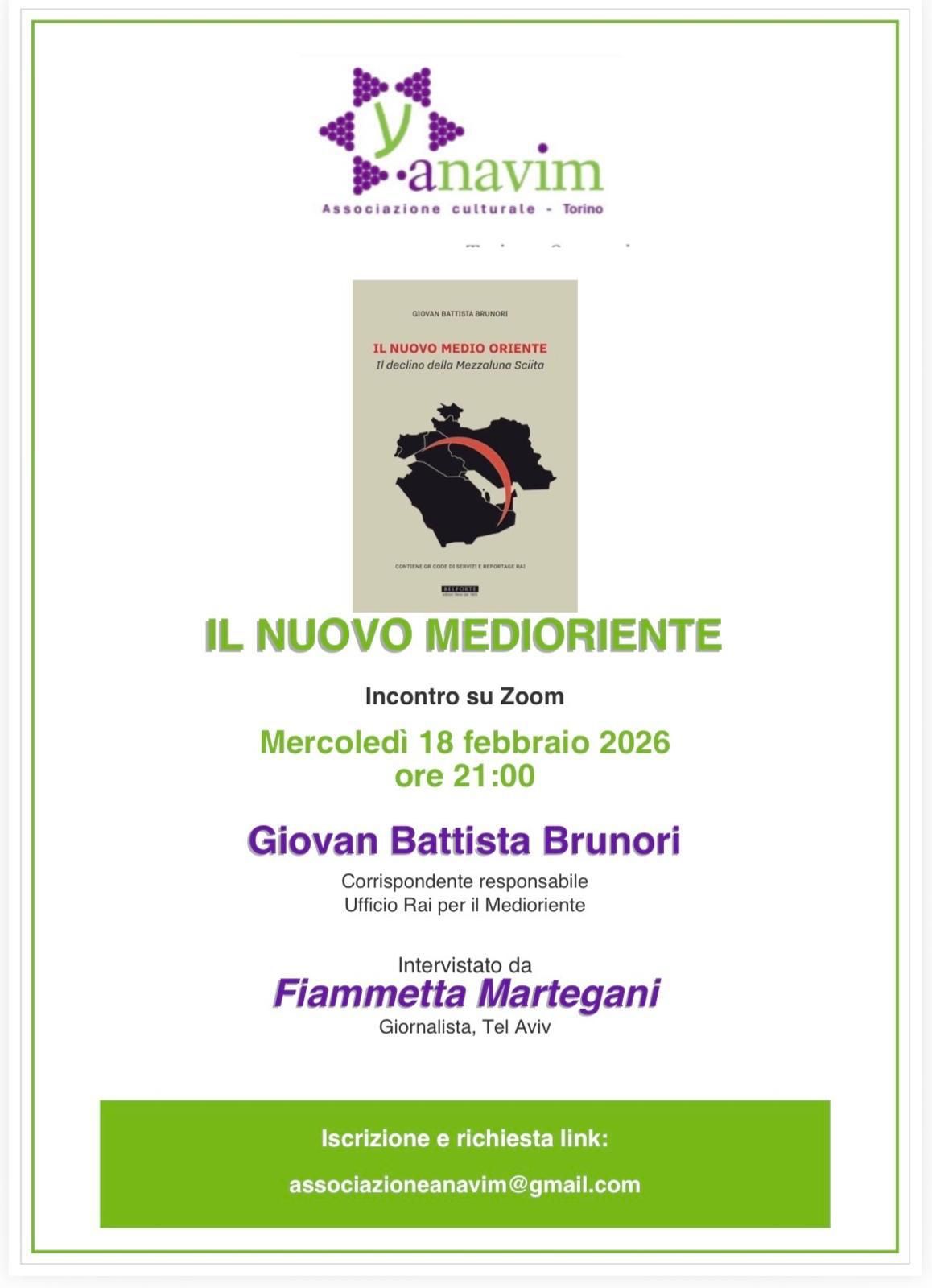 L’associazione torinese Anavim ha organizzato per questa sera alle 21 la presentazione online del libro Il nuovo Medio Oriente. Il declino della Mezzaluna Sciita (ed. Salomone Belforte) del giornalista Giovan Battista Brunori, corrispondente Rai da Gerusalemme. L’incontro si svolgerà su …