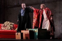 Attori che si muovono come marionette mentre fili simbolici pendono sullo sfondo, gesti stilizzati, dizione a metà fra la recitazione e il canto, costumi e acconciature tanto antirealistici da sembrare cartoni animati… Sono questi alcuni degli elementi che caratterizzano Il …