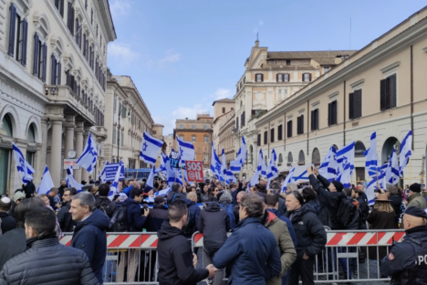 Alcune centinaia di persone hanno preso parte a Roma, in piazza Santi Apostoli, alla manifestazione di protesta contro il premier Benjamin Netanyahu indetta da alcuni cittadini israeliani contrari ai progetti di riforma avviati dal suo esecutivo. Molte le bandiere con …