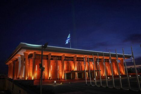 La Knesset si è illuminata di arancione per ricordare al mondo che oggi Kfir Bibas, uno dei due bambini israeliani dai capelli rossi rapiti e tenuti prigionieri da Hamas a Gaza, compie un anno.