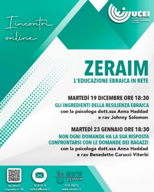 Due incontri online aperti a tanti. Li propone l’area Educazione e Cultura Ucei attraverso la piattaforma Zeraim, rivolta con materiale di approfondimento a insegnanti, studenti, responsabili delle comunità e a tutti i cultori di educazione ebraica. Nel primo, in programma …